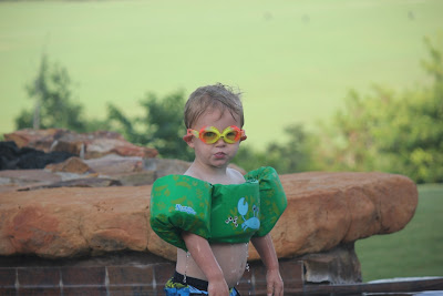 Summer is flying by! Parker loves going to the pool and playing at the splash-pad with his friends. He's starting to take an interest in arts & crafts and loves to paint. He knows a few of his shapes (circle, diamond, star, triangle) but we are still desperately working on his colors! ;) His latest movie interest has been Monsters Inc and he also discovered a new love for Gummy Bears! :) Like mother, like son, I guess! :)